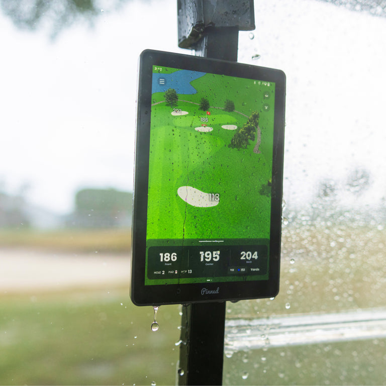 Meet The Caddie—a portable, weatherproof, magnetic, GPS golf tablet that transforms any cart into a smart cart.